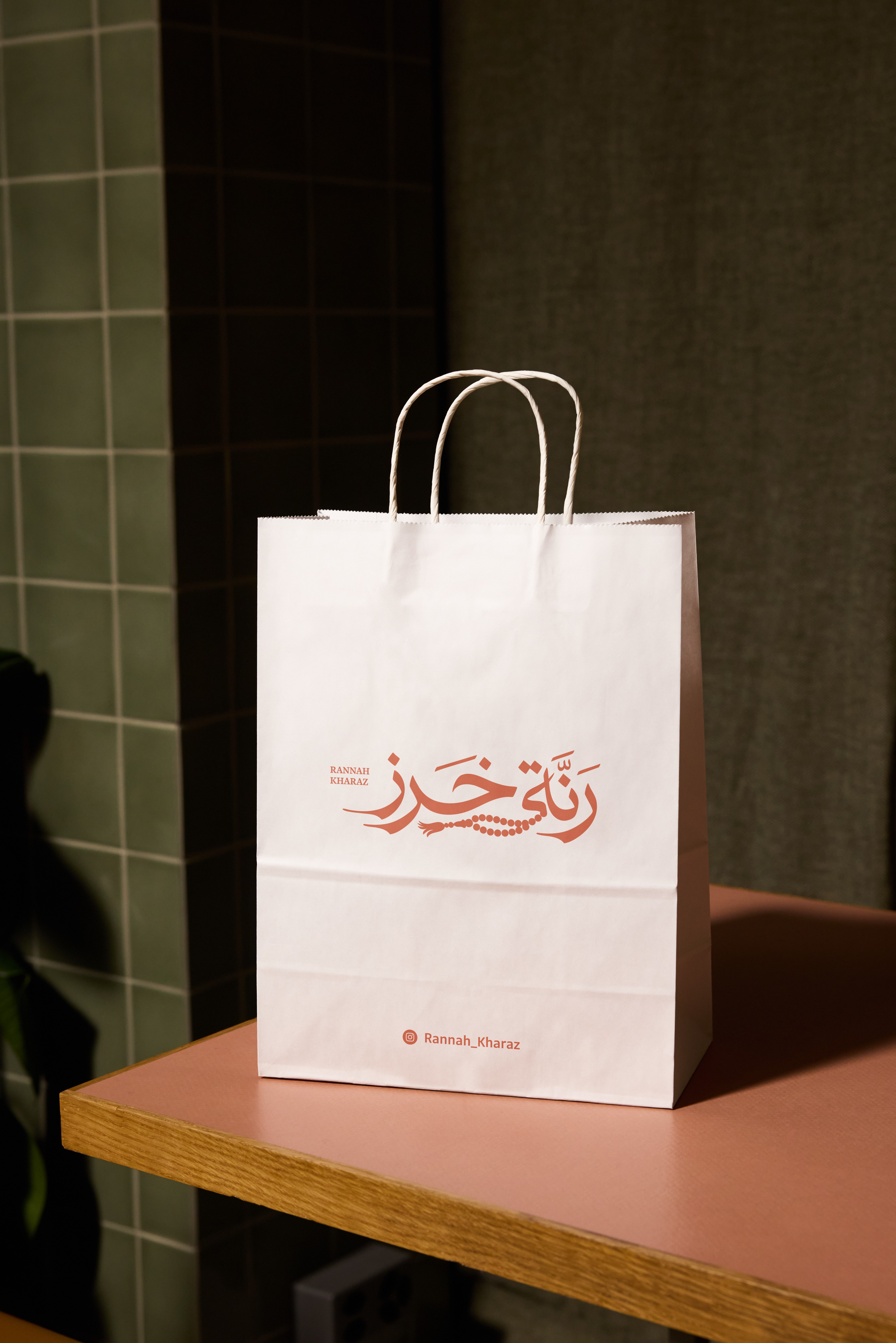 Rannah Kharaz is a men’s accessory brand that blends traditional character with a contemporary identity. The brand identity was developed comprehensively, with the logo designed as an Arabic calligraphic mark incorporating the product’s form within its composition.A modern color palette inspired by historical tones was selected to reflect heritage through a contemporary lens. The scope of work included designing business cards, Instagram posts, and branded packaging bags.